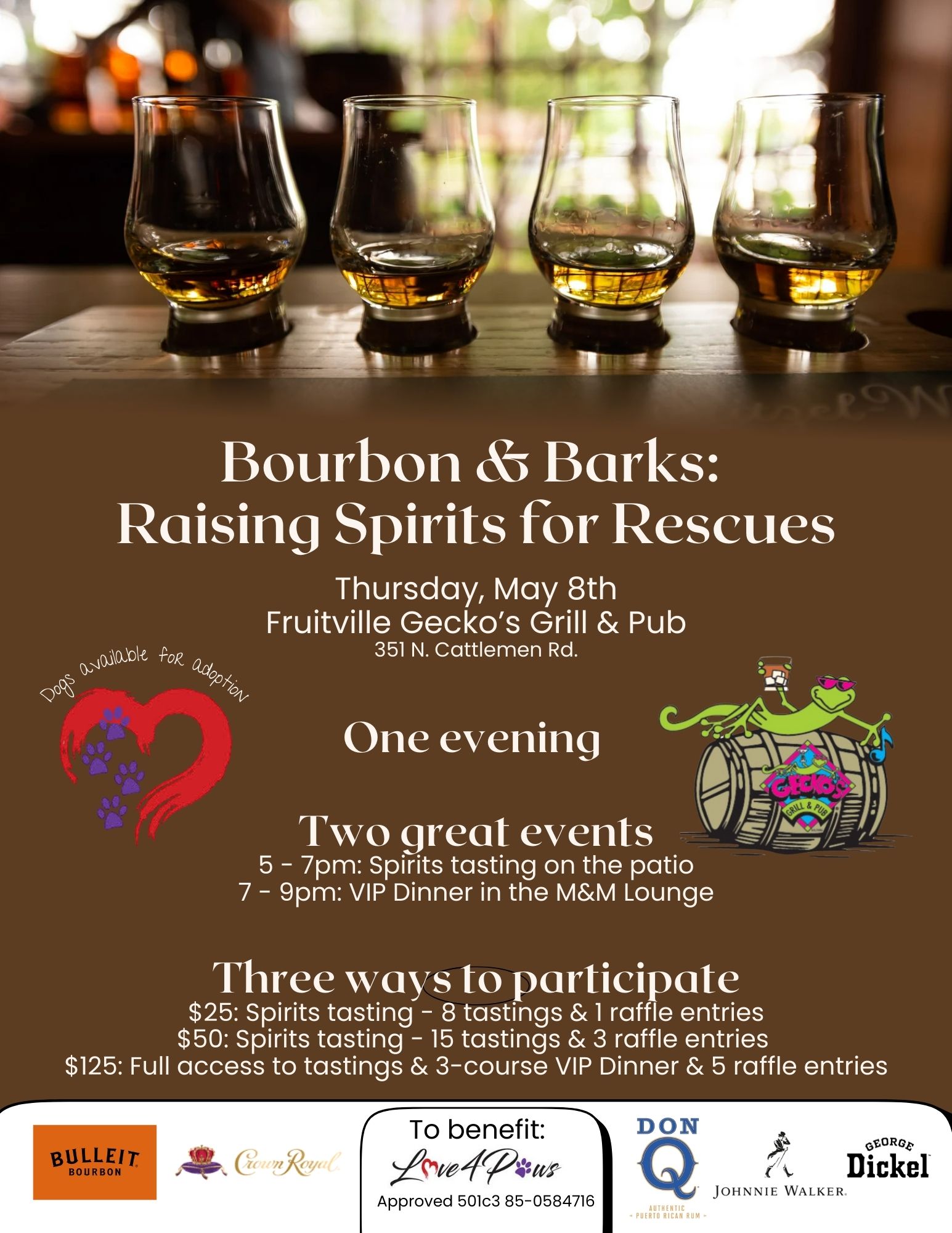 #BourbonsAndBarks #Love4Paws #Fundraiser #AnimalRescue #RaiseYourSpirits #GeckosSRQ