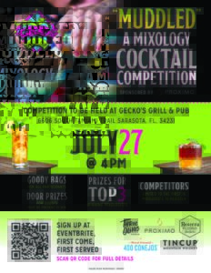 16 mixologists will compete for the title of Gecko’s Muddled Champion and there can only be 1 winner! The competition is limited to first 16 Mixologists to register.