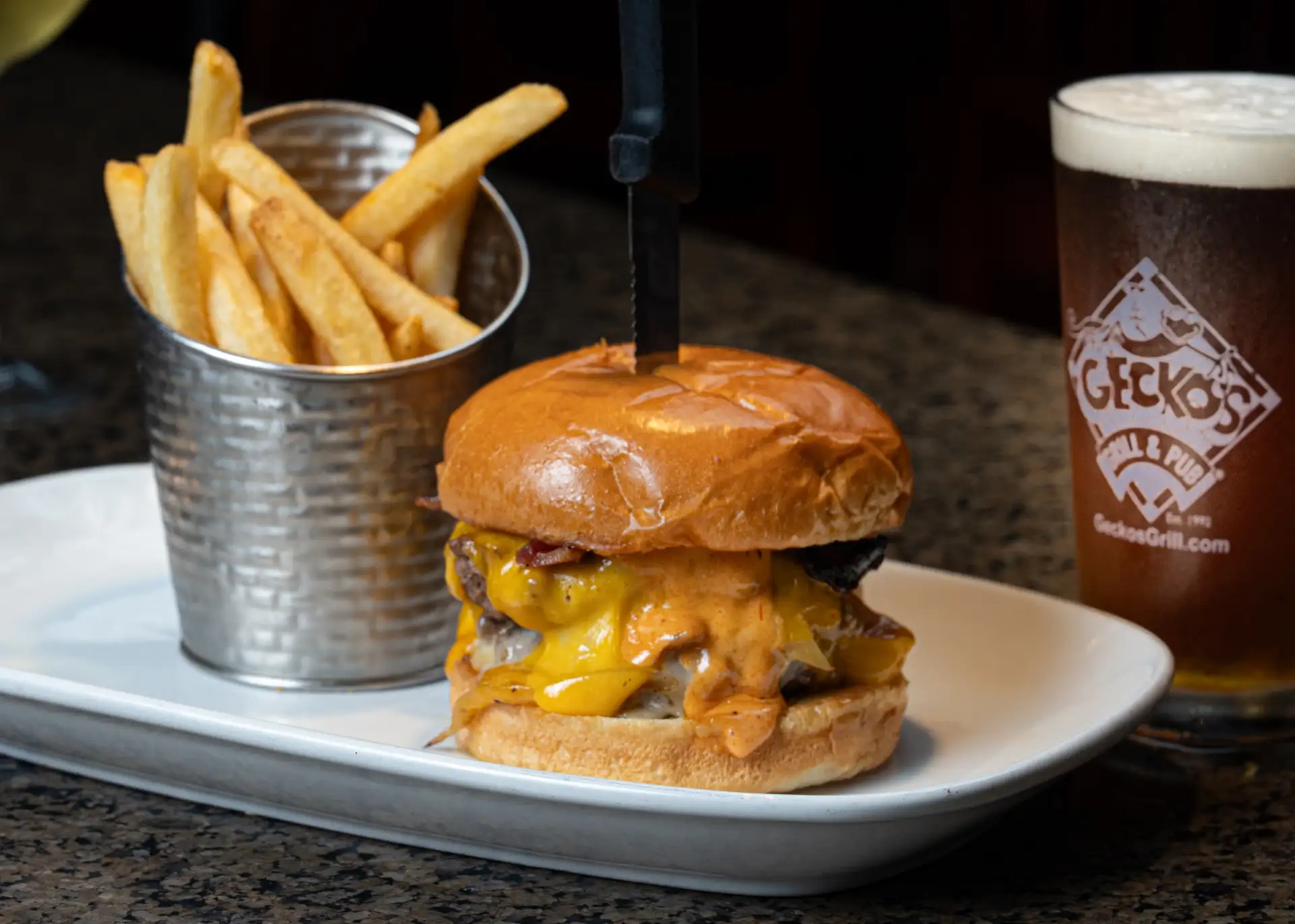 At Gecko’s, our team strives every day to provide our guests with exceptional hospitality; fresh, locally sourced American Pub fare with a gourmet twist, and an award-winning menu that is accessible to everyone.